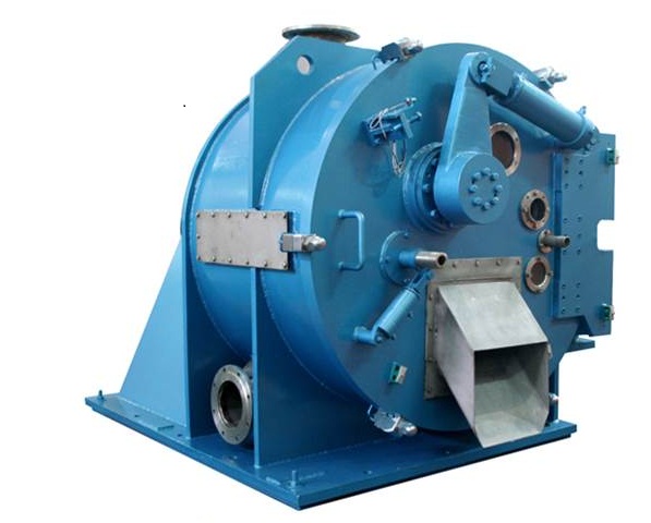 After Horizontal peeler discharge centrifuge run at full speed, open the feed valve, suspension through bucket into the drum and uniform distribution on the filter medium of the inner wall of the drum.Under the action of centrifugal force ,the liquid phase will through the filter medium, and then been throw away from small holes in the drum body .However, the solid phase will trapped in the filter medium becoming filter cake. When the filter cake reaches a certain thickness, close the feed valve